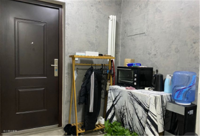 经过一番改造后,入户多出一个小玄关,简单摆放了置物架和小桌子,便于存放鞋子和随手物品。