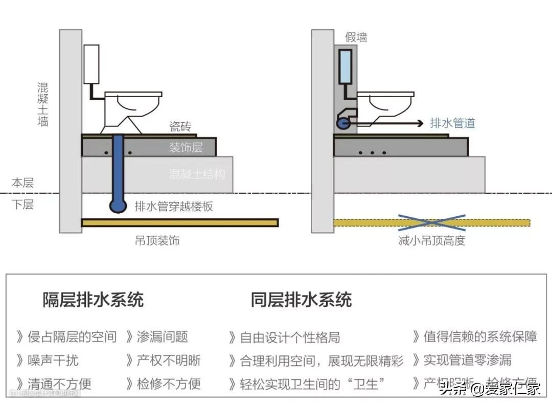 工艺 | 同层与异层排水优缺点对比,看完你立马清晰