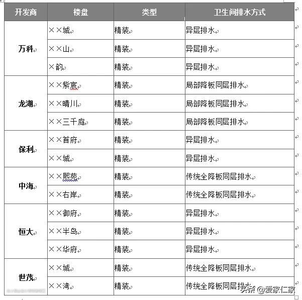 从表中可以看出,不同的开发商采用的排水方式也不尽相同。