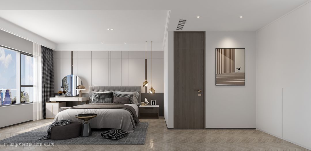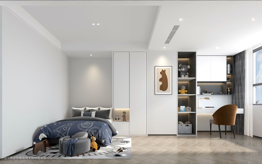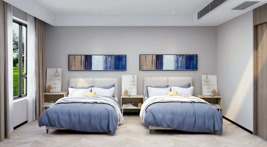 208m²的现代轻奢风装修,儿童房这样双床设计