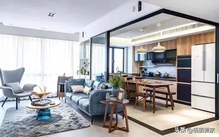 利用玻璃门将厨房与客厅隔开,通透的玻璃材质使得室内更加通透。
