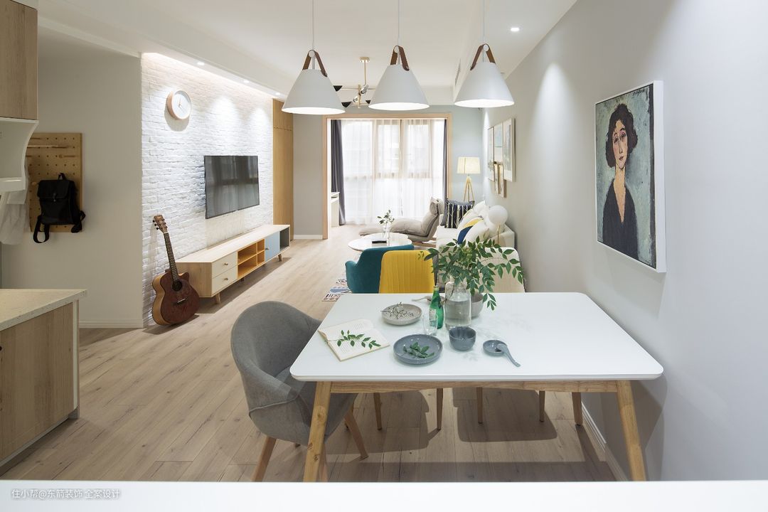 餐厅方面,原木北欧风一般会在餐厅的旁边布置一个原木的小餐柜,餐厅的餐桌椅都会用原木来搭配,营造出一种自然清新的餐厅环境,这样的餐厅让人看起来协调又舒适。