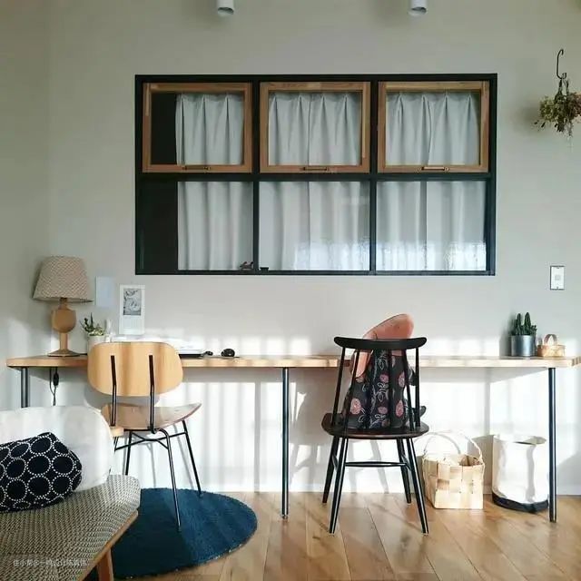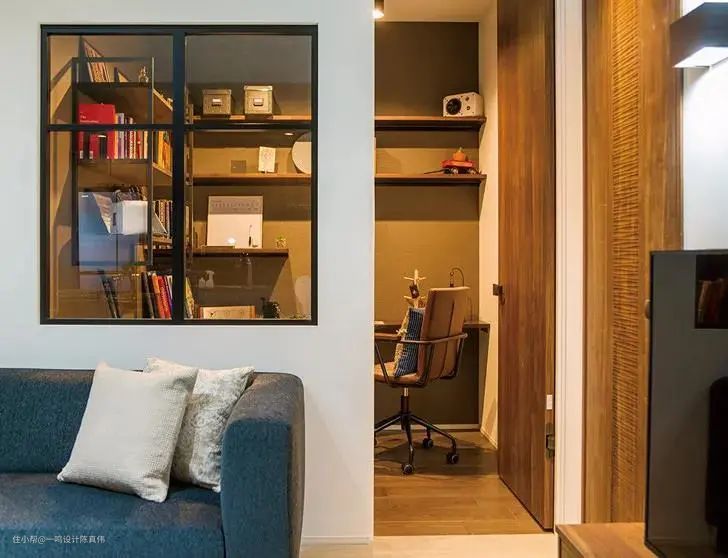 在书房办公或者学习,都需要明亮的光线,在书房和相邻空间之间设计一个室内窗,既能扩大视觉空间,也能补充书房的光线,还能够让书香气从书房弥漫至整个家,提升家里的文化气息。