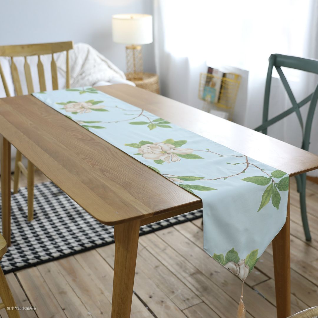 和桌旗类似的东西是桌布,当年的木桌上铺一层桌布,的确有保护桌面的作用。但是今天我们的桌面往往是石材、玻璃材质的,坚硬无比,又有什么必要铺一层桌布呢?