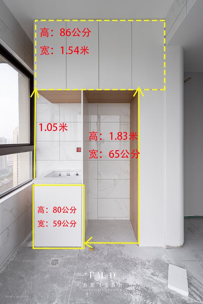 一旁留出高1.83m*宽65cm的空间,当然是为了日后放洗衣机和烘干机的。