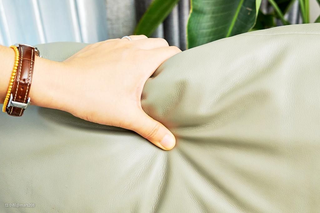 这款单椅面料使用了欧美进口头层黄牛皮,上手就能发现它比普通的皮料要更加柔软亲肤,其纹理也十分细腻。到手后仔细查看了一圈,入手的这把没有发现疤痕,可见用料品控也很不错。听销售介绍这一款还加了天然透明树脂,可以有效防止划痕产生,家里有娃和宠物的可以放心使用了。