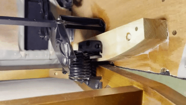 从内部能看到,这个摇摆系统是通过左右各2根、共4根强力弹簧控制单椅前后摇摆阻尼感,以提供弹性充足的前后摇曳感。