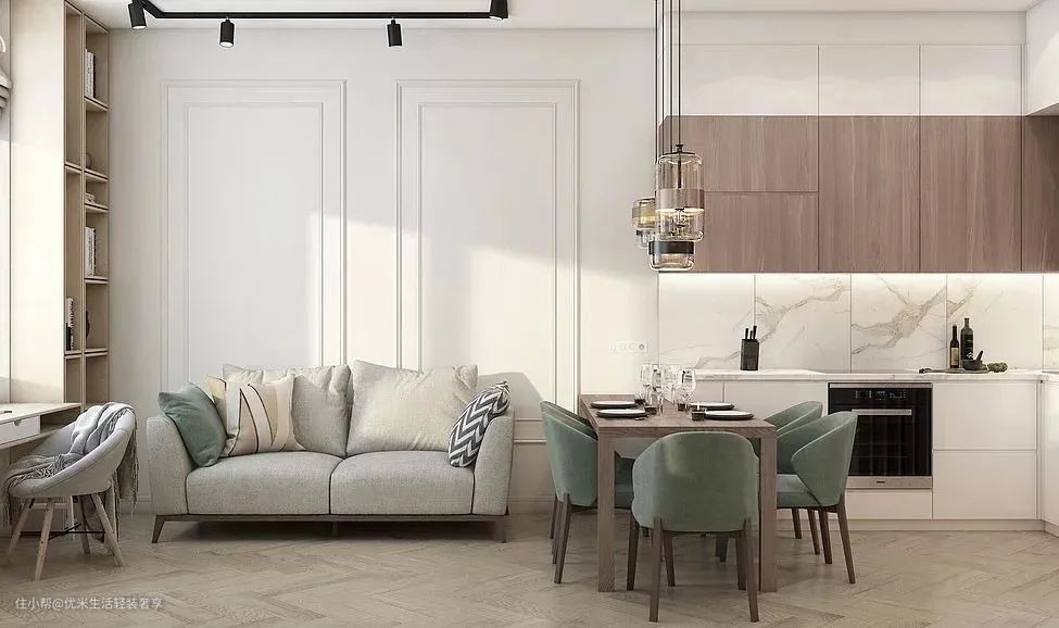 大白墙搭配得当其实颜值也很高,最近很流行的极简风格很多都是以大白墙为基调,再利用其它的材质纹理进行装饰,质朴又高级的反差美感。