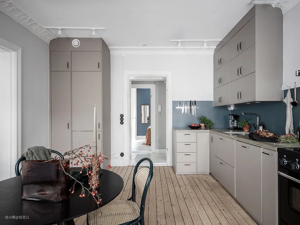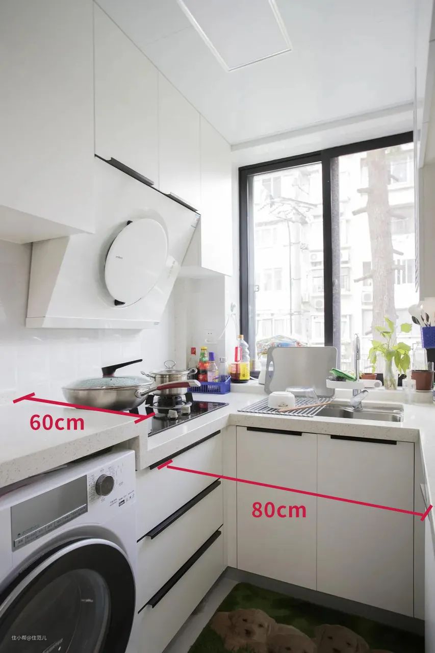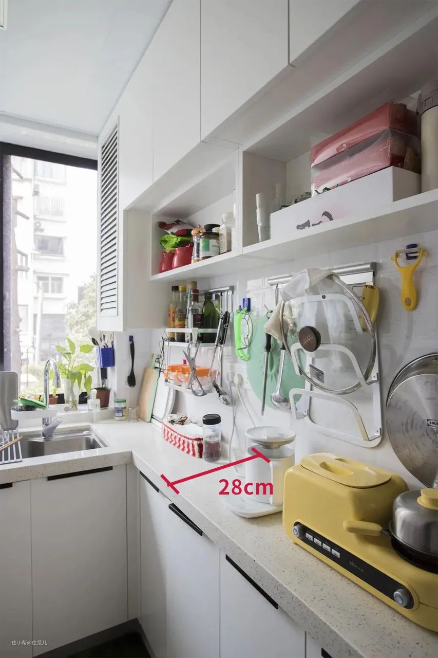 但如果你的厨房面积有限,想要尽可能压榨空间,在满足过道的基础上,也可以考虑下其他尺寸——做窄台面或压缩柜体。