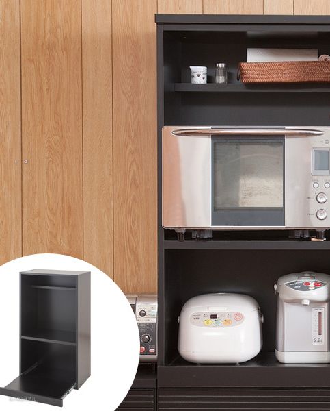 不常用的微波炉,可以放搁板上;常用的电饭煲,放抽拉板上,更方便煮饭,柜内记得提前预留好插座。