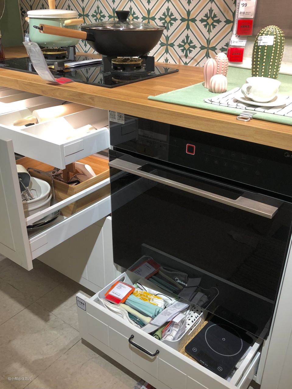 能明确自己需求,安排柜体布局的话,使用起来会更顺手。住范儿客户韩女士,因为使用抽屉的频率更高,把抽屉做在了蒸烤箱上。