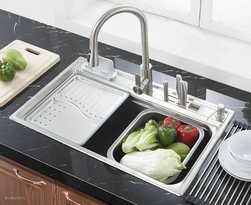 有条件的话,选择70cm以上的大单槽,锅碗瓢盆全能装下。