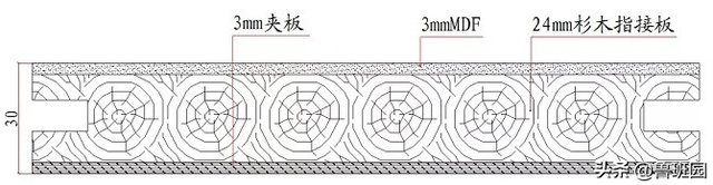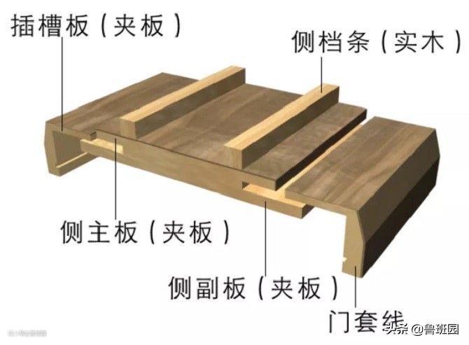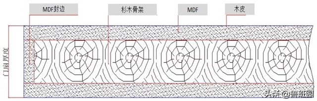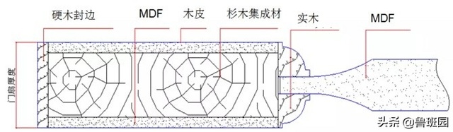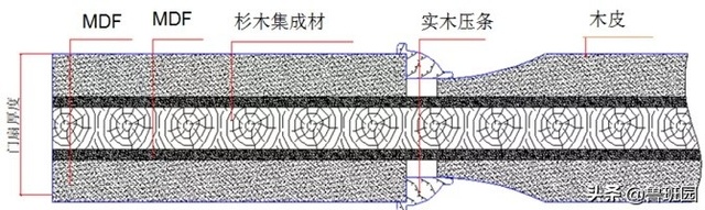 采用经过干燥加工的杉木、松木、人造板等材料做门扇边框,中间填充木质材料、蜂窝网结构或具有良好隔音保温功能的穿孔刨花板(桥洞力学板)。层基材使用中、高密度纤维板,表面贴各种微薄木(实木皮)压后制成。