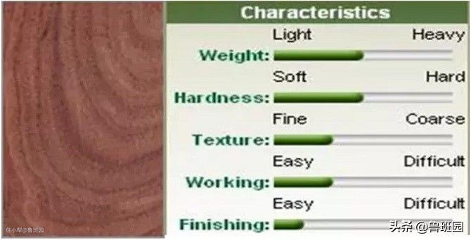 核桃木通常为直木纹,亦会带有波纹状或曲线形木纹,产生具吸引力、具装饰作用的图形。核桃木是一种中等密度的坚韧硬木材,抗弯强度和断裂强度适中,亦是一种最耐用的木材。