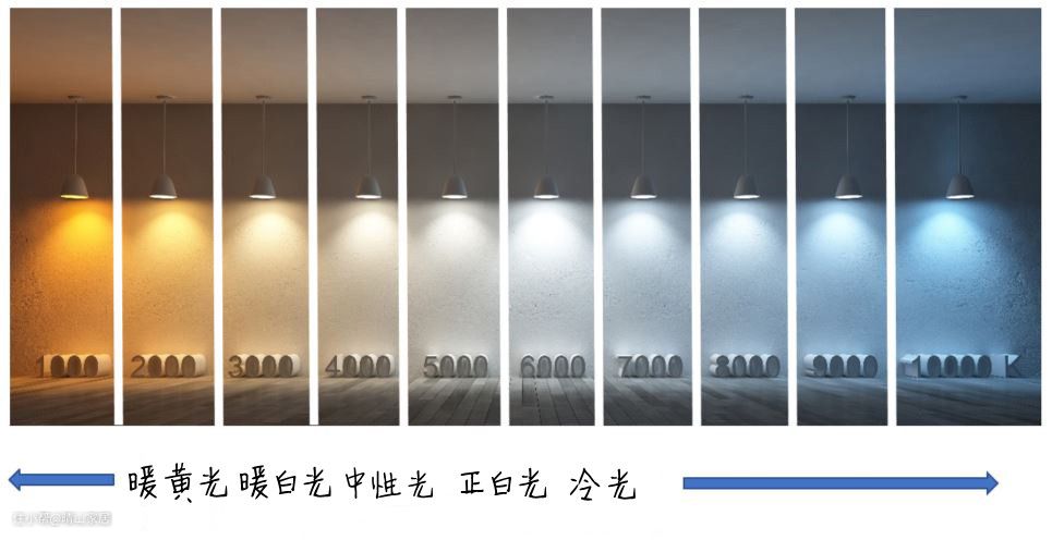 色温应该大家都比较熟悉,因为在以往的文章里,我们经常建议镜前灯要用4000k的中性光,这里的4000k就指的是灯的色温。除了4000k,家居场景下我们还经常见到以下几种色温。