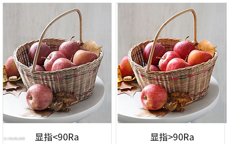 贵到990便宜到9.9的筒灯,都会给你放一张高显色指数与普通显色指数的对比图,一定得是颜色鲜艳的红辣椒或红苹果之类的。