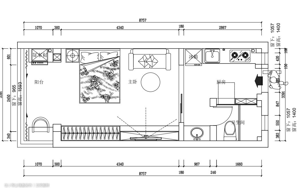 【结构】一字型的户型让空间既有局限性又能够分割明确,每一个空间都尽可能地合理规划,让小户型发挥最大的空间效果。
