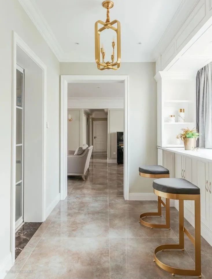 酒吧的吧台一般都设置得比较高,看起来时尚高级,如果直接在家里“抄作业”,一定会悔不当初。家里的吧台一定要设计适合且让大多数家庭成员都能舒服地坐着的高度。