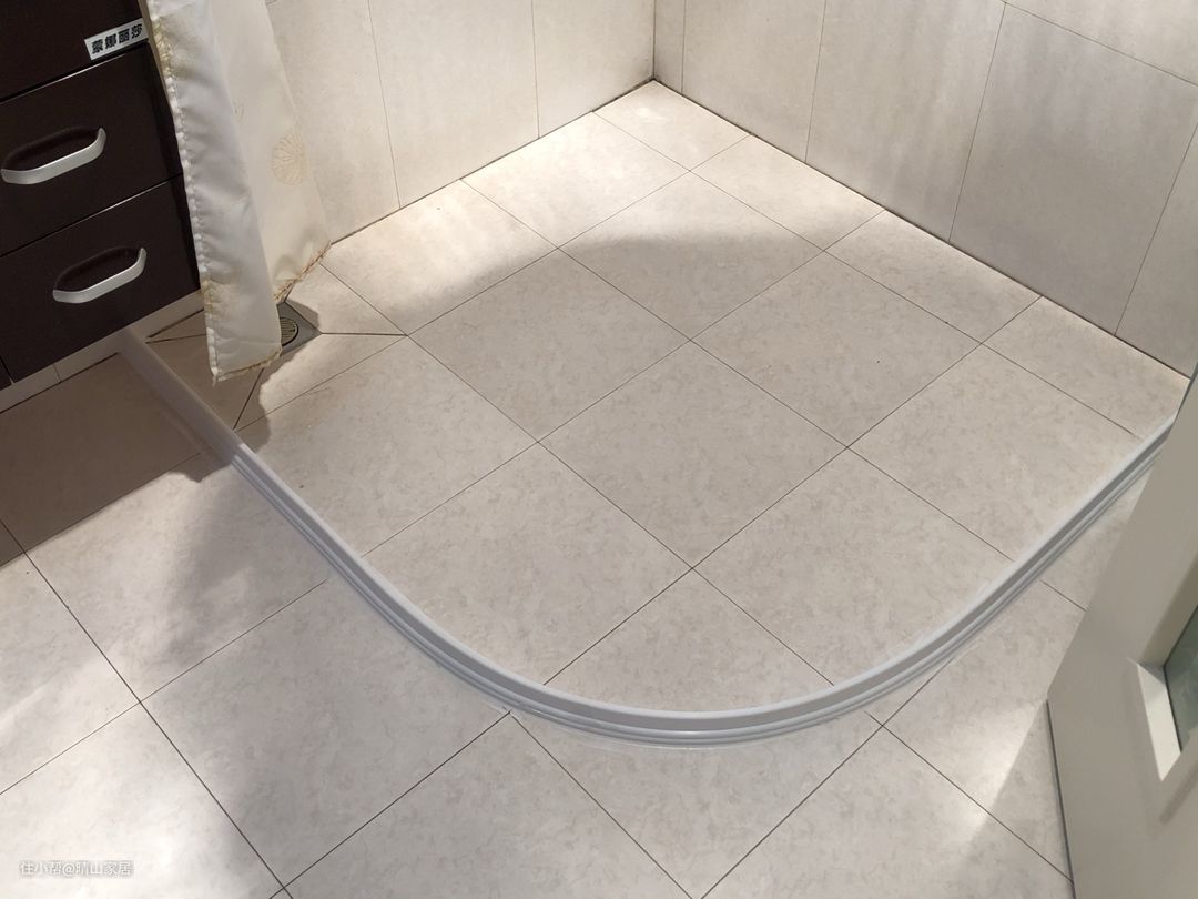 针对这个问题,可以装上这种硅胶挡水条,材质柔软,可随意弯折,能适应每家各种形状的卫浴间。