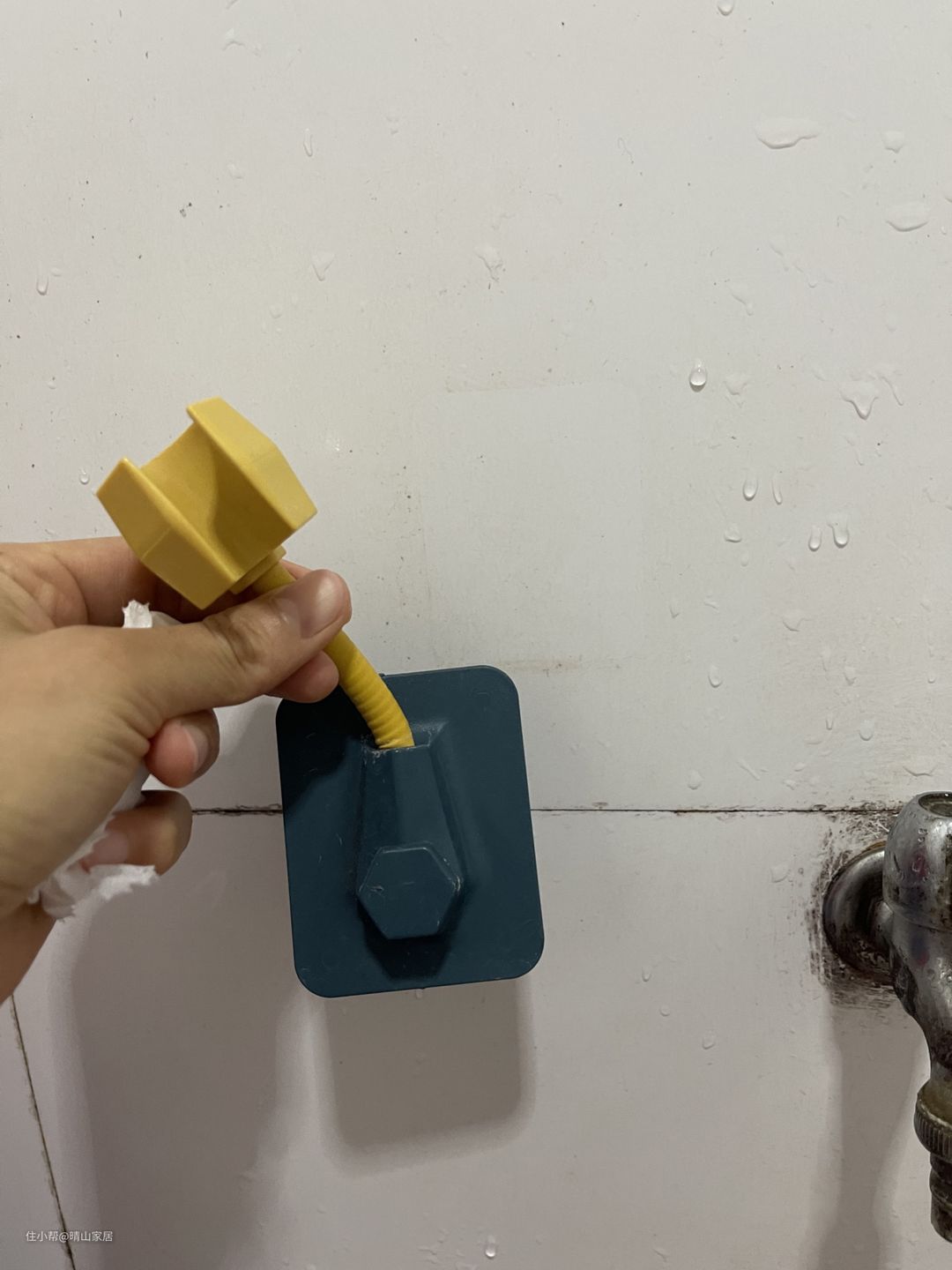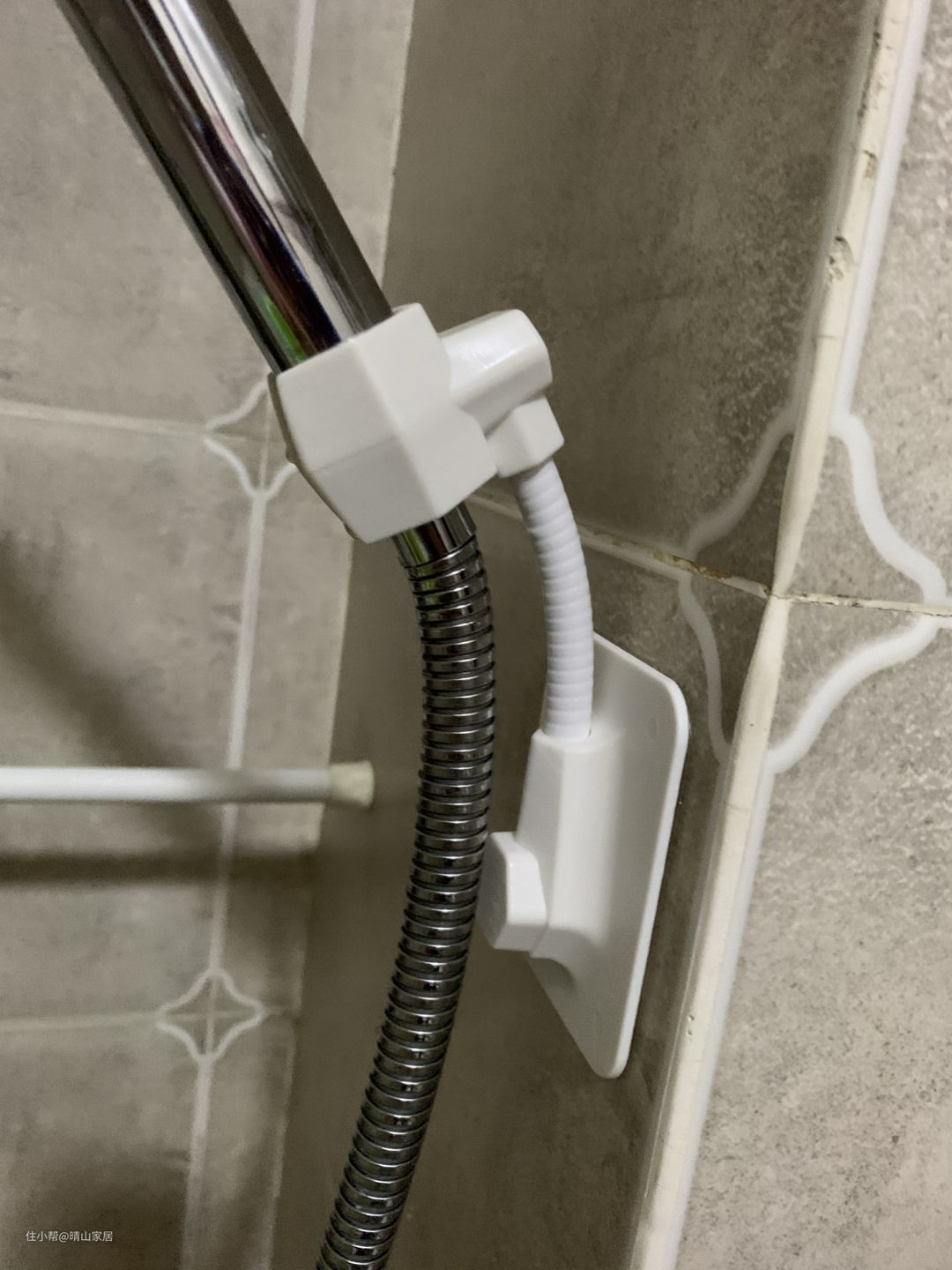 安装方式也很简单,自带3M胶,可以直接粘在墙面上,作为临时低处使用完全ok,但不建议作为高处花洒的主要固定架,有掉落风险。