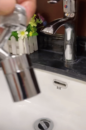 万向龙头延伸器是这样的,可以直接拧在龙头出水口处,相当于对原有水龙头做了一个升级,还能360°旋转,洗漱、接水更加方便。