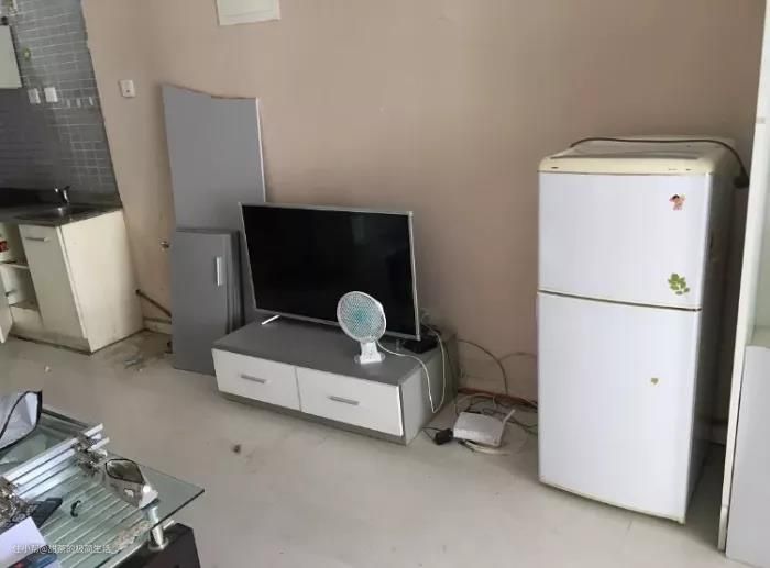 原来的电视柜尺寸、颜色都很奇怪,看起来很不协调,小伙果断把电视柜扔掉,只留下了电视机。