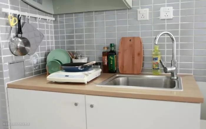 按照目前厨房的尺寸,小伙定制了一个1.2米宽的原木风橱柜,价格在700元左右,非常实惠。洗手台也换了新的面盆和水龙头,小伙还将墙砖和抽油烟机都清洗了一遍,整个厨房焕然一新。