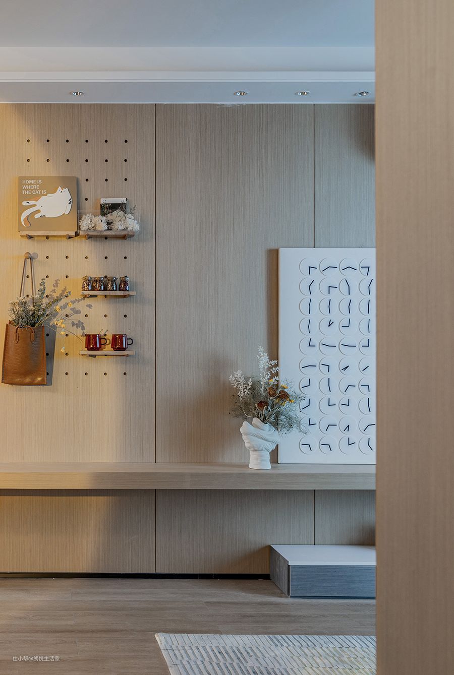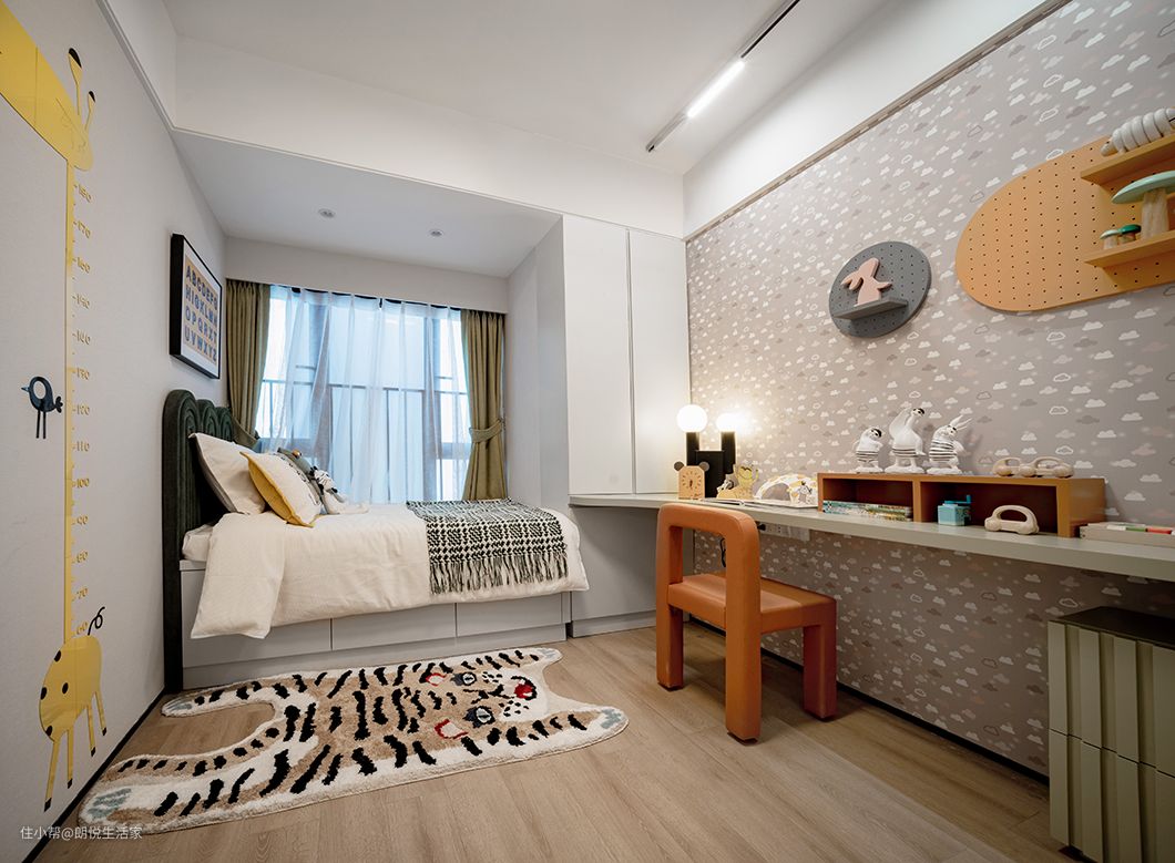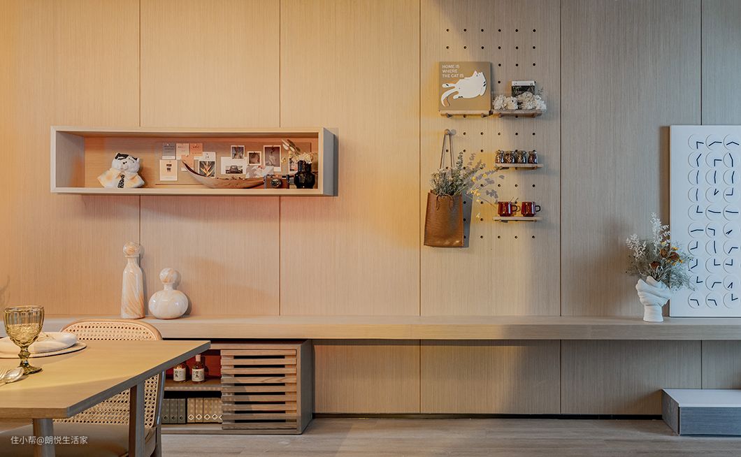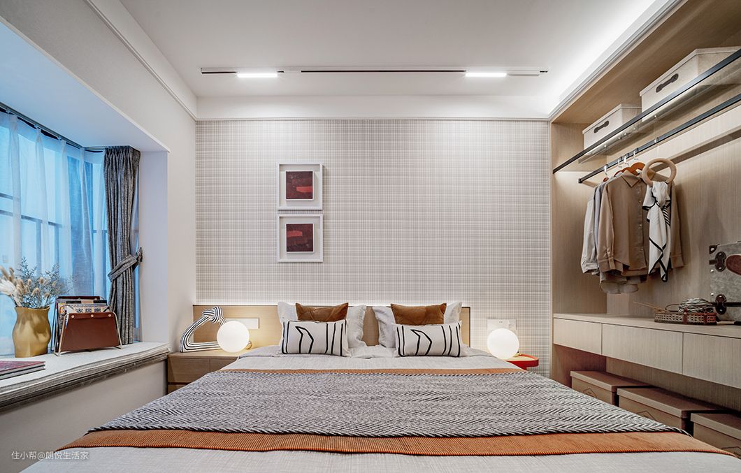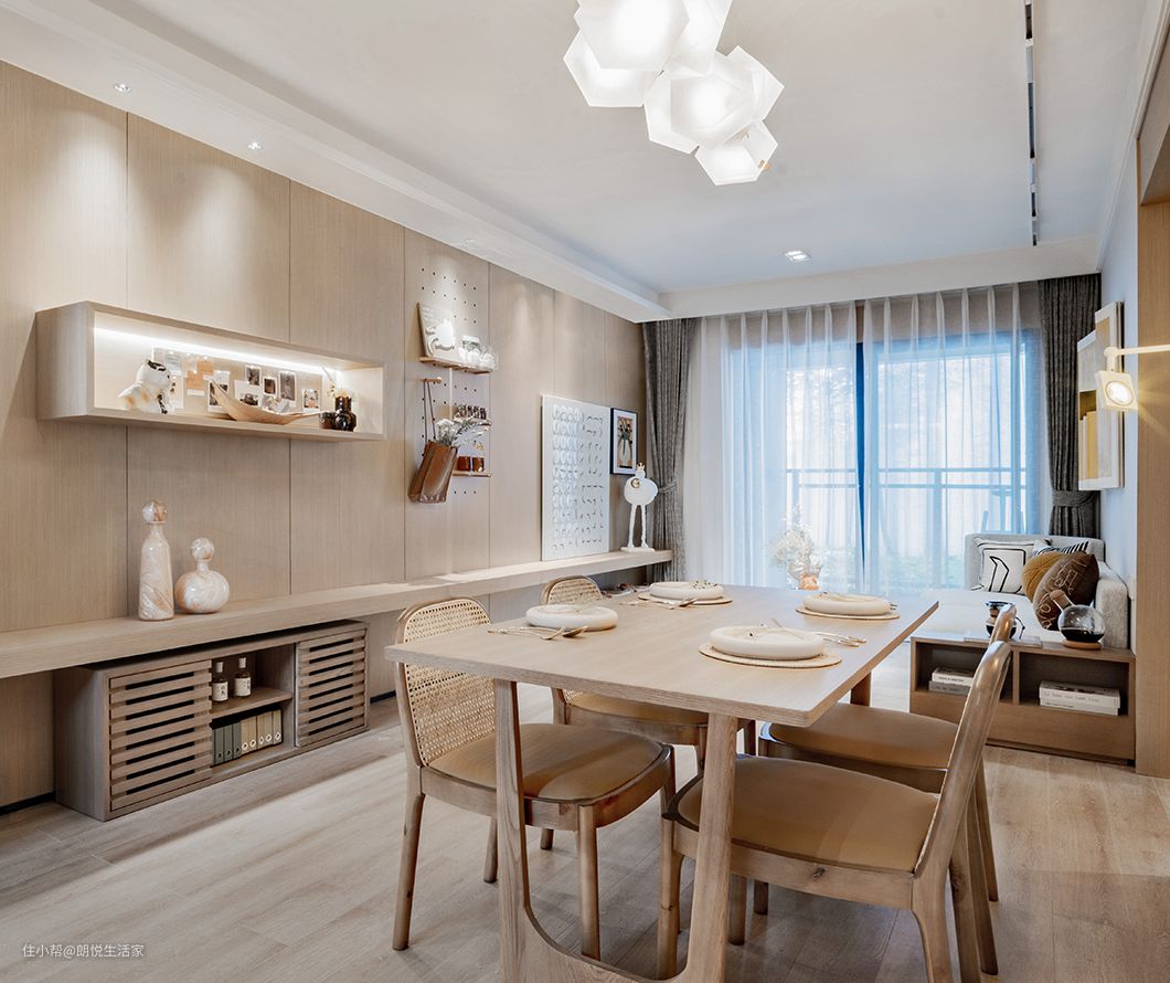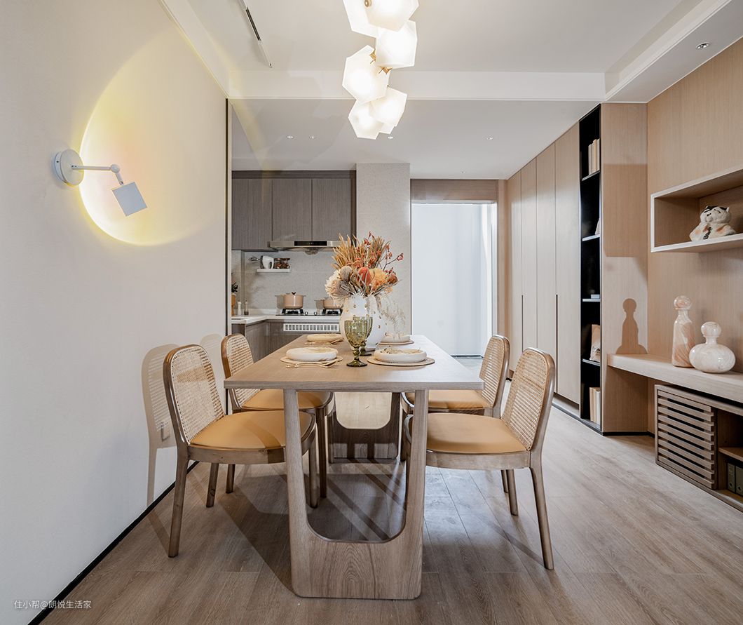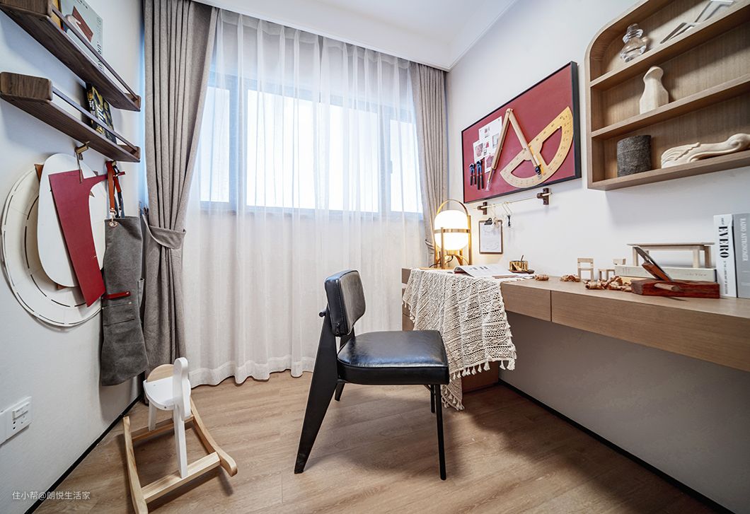这里主以白色和原木色为主,围绕身心的是一片淡雅之感,浅色原木家具古朴典雅,使整个空间氛围显得格外温馨、舒适。