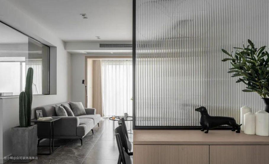 如果有玄关柜的小伙伴可以把长虹玻璃搭配在上面,用长虹玻璃做半玻璃隔断。既能保持玄关到客厅的通透感,又能保证私密性。