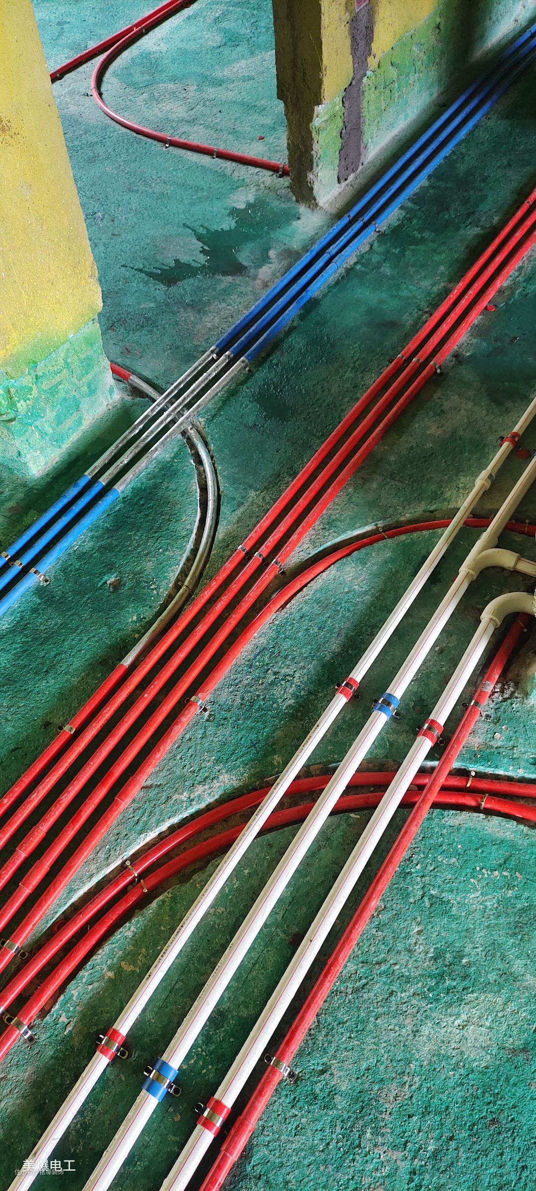②红蓝线管:1.上下线管开孔时,光滑标准,管头必须套杯梳,防止拉线时破坏电线绝缘层。要把线梳理整齐。