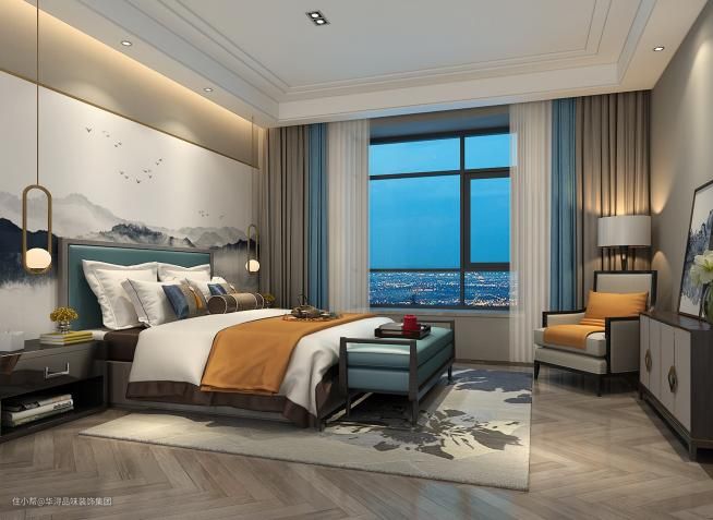 主卧的设计重点主要在舒适度和收纳量上,毕竟一个卧室最主要的功能就是为业主提供优质睡眠,所以依据整体简约轻奢的风格设计,同样继承客厅的风格,以大气的灰色作为主调。