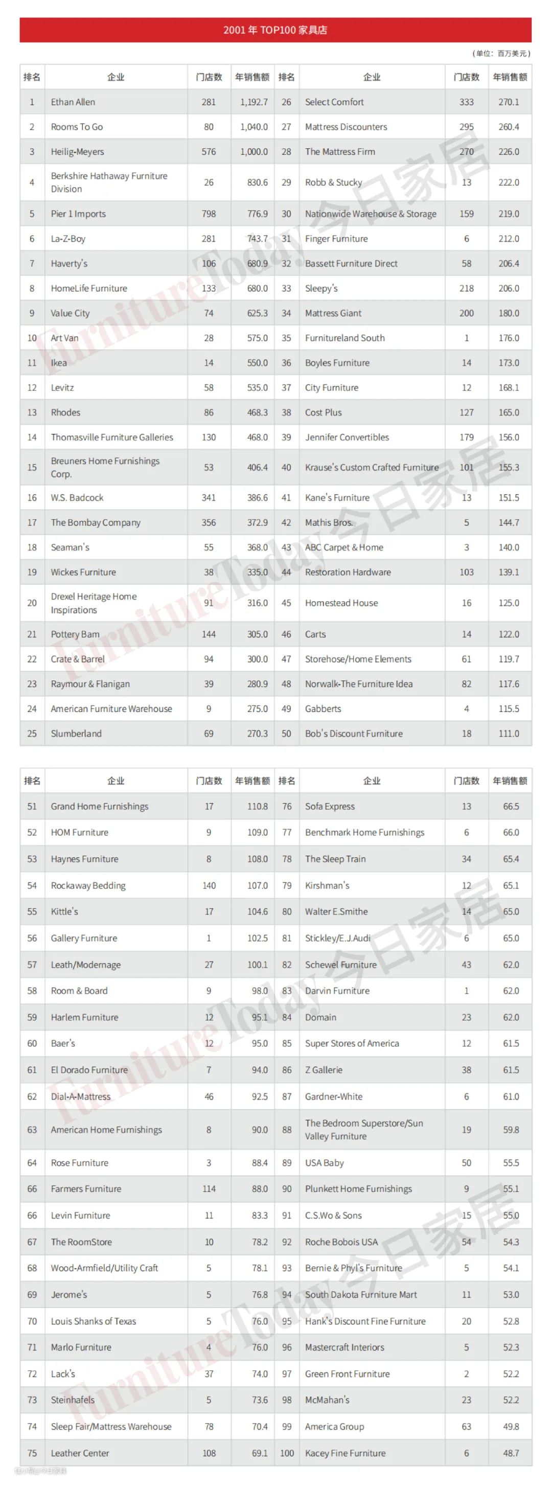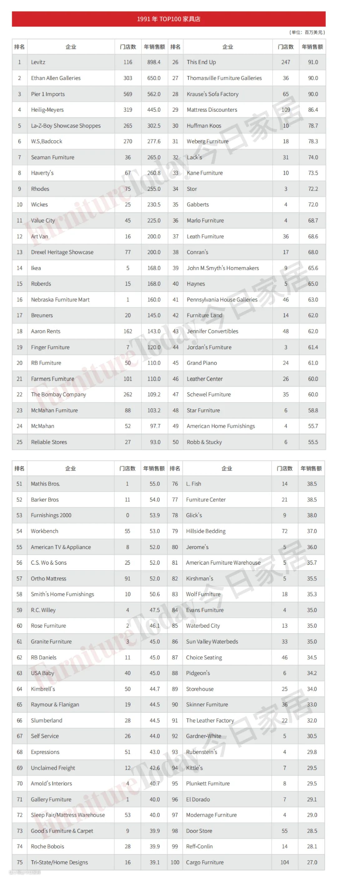 全美家具店排行榜40年大回顾!今天仅10家依然在榜?