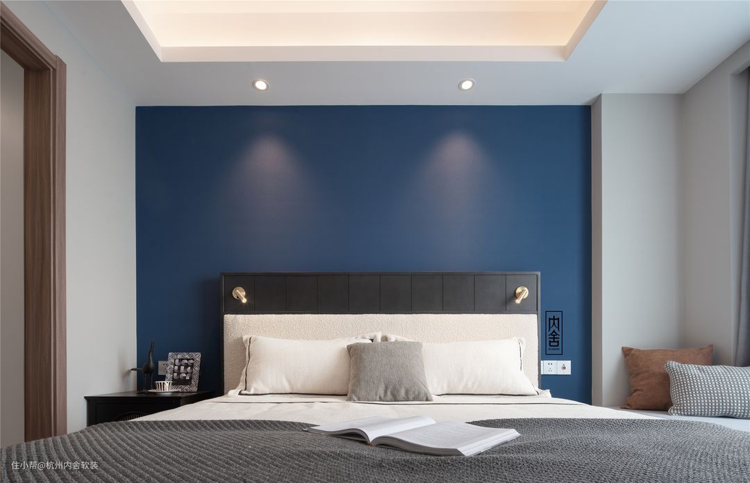 主卧作为休息的空间,在软装搭配上以舒适、大方为主,没有过于繁复的装点,简简单单的蓝黑配色反而更显高级。