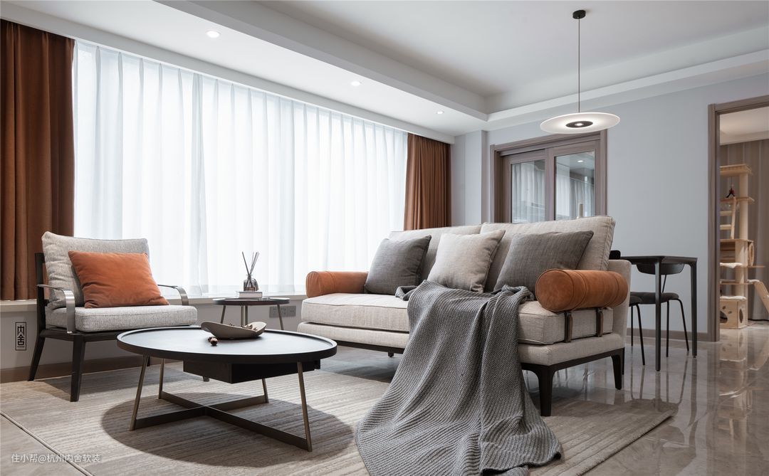 本案是在硬装已做好的基础上来做的软装搭配。客户是一对年轻夫妻,女主人希望尽量温馨点,富有设计感,有细节,是一个有温度的空间。这个客户是老客户推荐的,与设计师聊了几次,彼此都很投缘,对设计师的信任度也特别高。男女主人都很忙,所以两人不太希望家里太复杂,喜欢简简单单,清清爽爽的。所以这套作品里面几乎看不见什么多余的背景装饰,主要靠色彩来增加整个空间的设计感,一直到截稿,女主人对整体效果都是很满意的。家庭成员还有一只小黑猫,小猫的房间原本是餐厅空间,因为客厅开间够大,所以就把客餐厅安排到一起,腾出了一个空间作为小猫单独的起居玩乐空间,真是人不如猫系列。