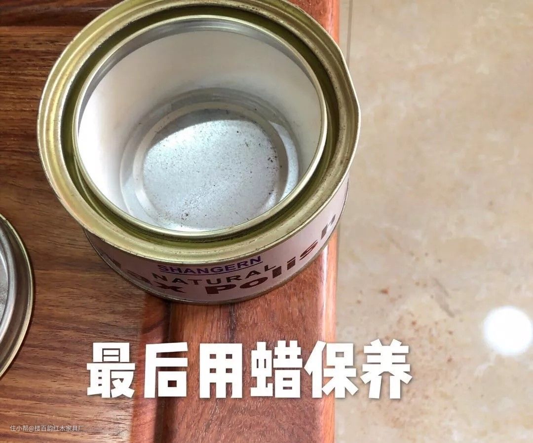 红木家具的保养最重要就是经常用干毛巾给红木家具除灰尘,偶尔可以用专业的保养蜡是最好的。因为用蜡做保养可以让红木家具吸收一部分,然后在用干毛巾擦去表面多余的蜡。就好像我们给脸做保养一样,白天用润肤露晚上就洗干净,因为润肤露里面就含有天然的蜂蜡。看下图正确的保养视频。