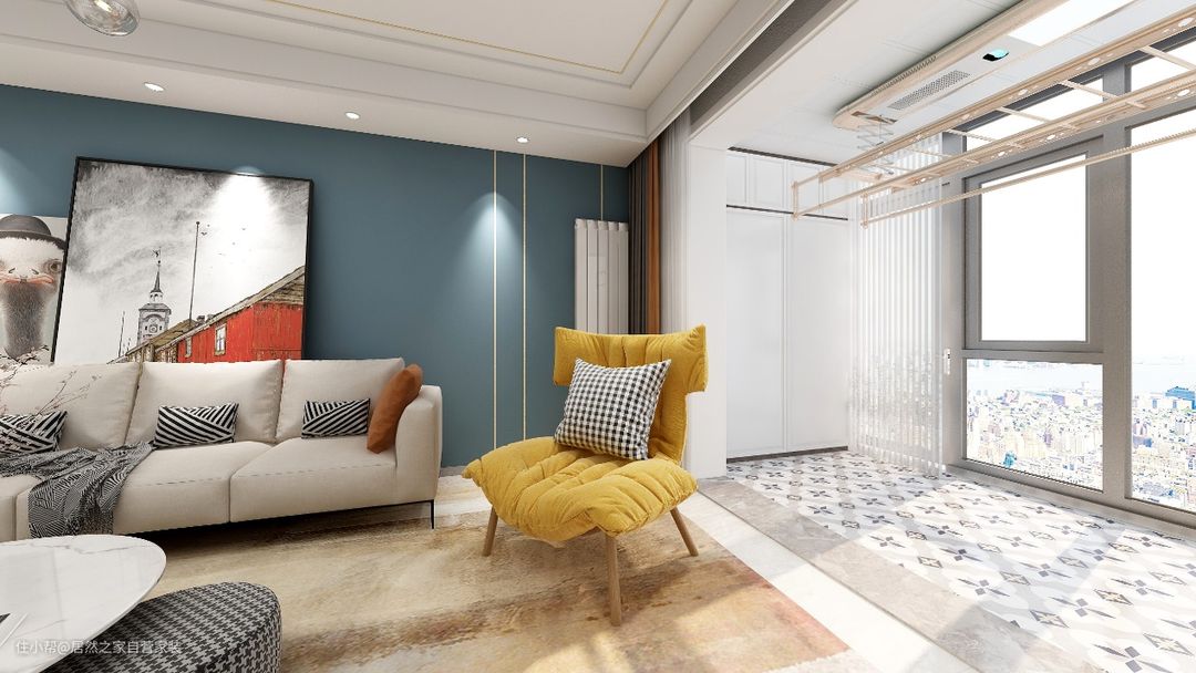 大面积的南向落地窗,带来丰富的日光,与客厅形成了一个良好的氛围关系,地面使用花砖又将阳台与客厅区分开,定制一组上下翻转床的柜子。即满足多余的休息空间,也能很好的隐蔽收纳。让阳台无论是采光还是休闲,或者是晾晒都能满足。