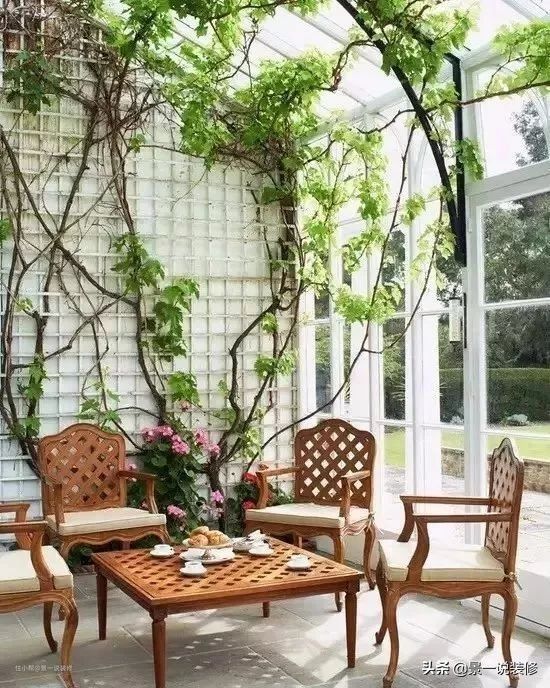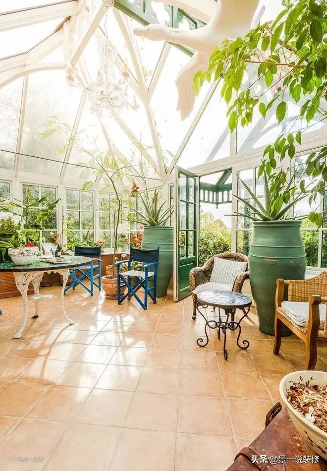 给屋内提供新鲜的空气,最好挑选那种攀爬的植物种植,这样可以形成一道道绿色的帘幕,为房子遮挡着烈日直射,起到降温隔热的效果,这样子还可以让阳光屋在炎炎夏日里形成特别凉爽的新天地。这一刻的自己好像就是童话里面的美丽公主呢。