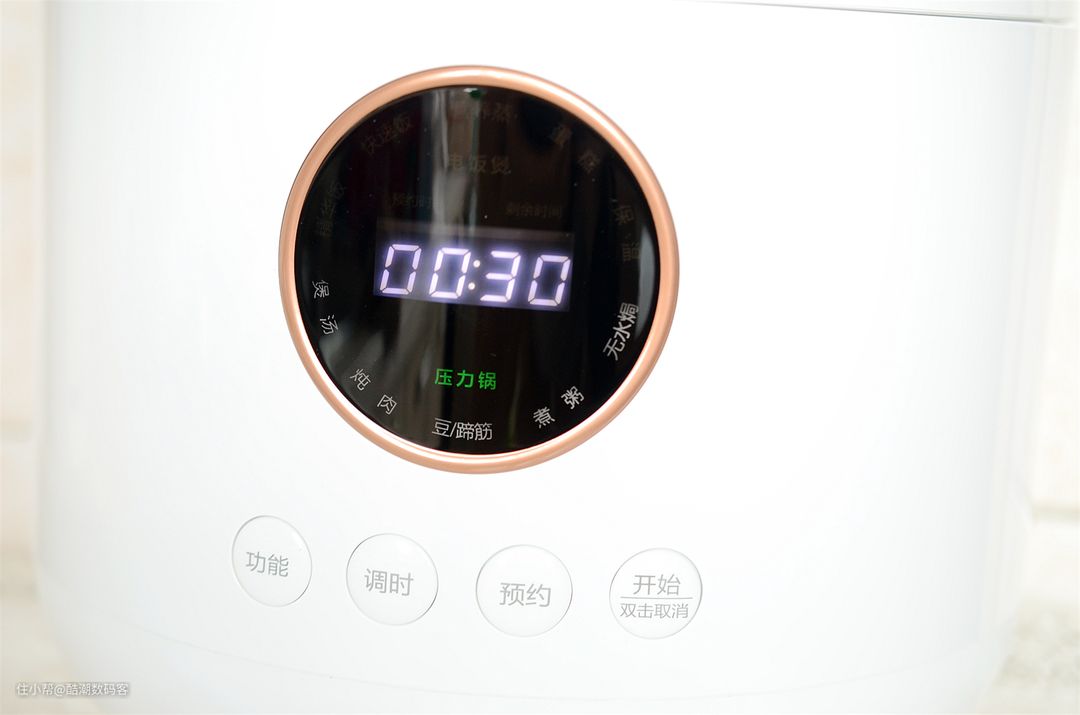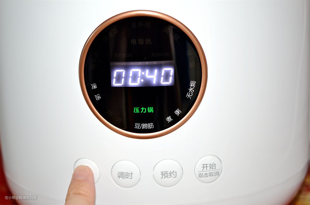 压力锅模式,按压不同的按键,可以实现调时间,预约时间调整,点击开始即可实用。