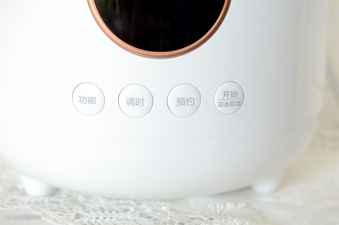 大宇品牌目前在很多产品设计上,以时尚潮流年轻主流化为基础,而电饭煲压力锅两用锅也延续了高颜值的设计,上盖和机身白色外观锅身,设计有圆形IMD数显系统,淡金色圆形金箍点缀设计,按压式按键,操作简单方便,使用体验反馈比较真实,第一眼来看挺好看的。