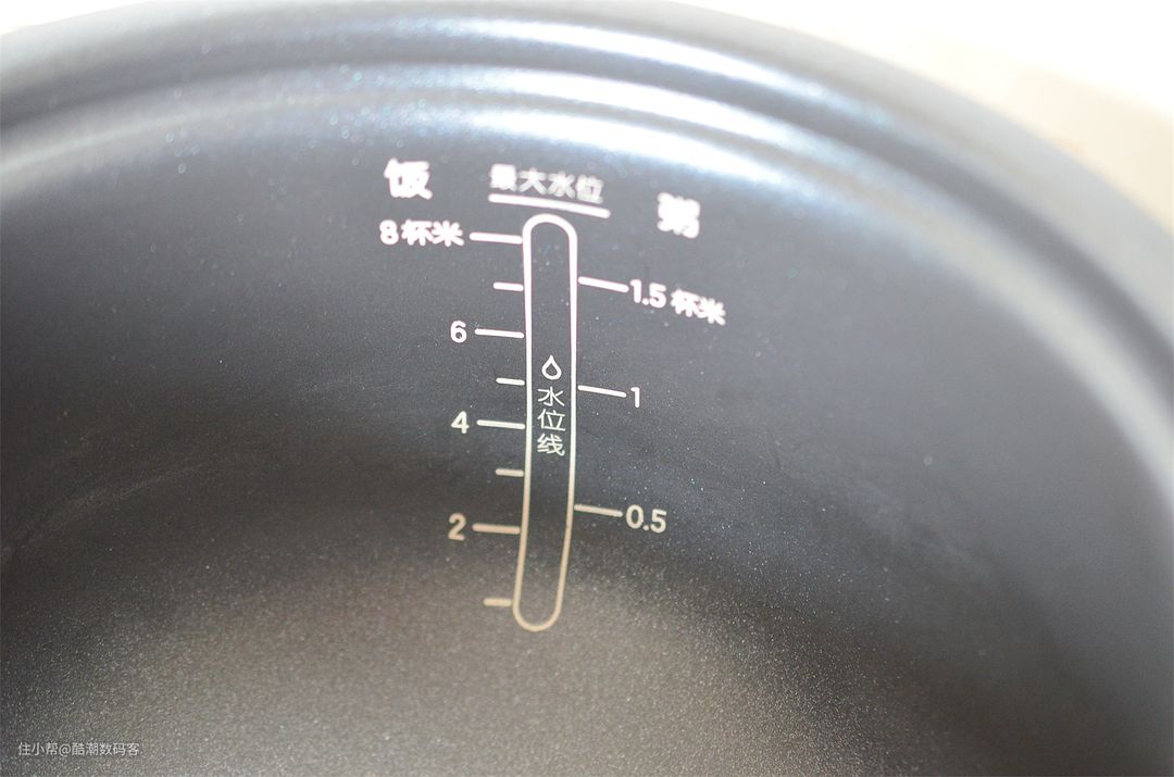 球形不沾内胆为电饭煲模式使用,内侧设计有不同水位线,在蒸米饭、煮粥的时候,可以让使用者有很直观的观察,不会注水过多,造成做饭不可口。