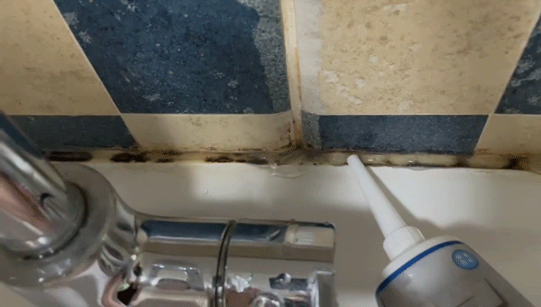 沿着发霉处挤上一圈啫喱,尽量覆盖全面,不要不舍得,毕竟清洁后很久才会再发霉,然后静置2-3小时。