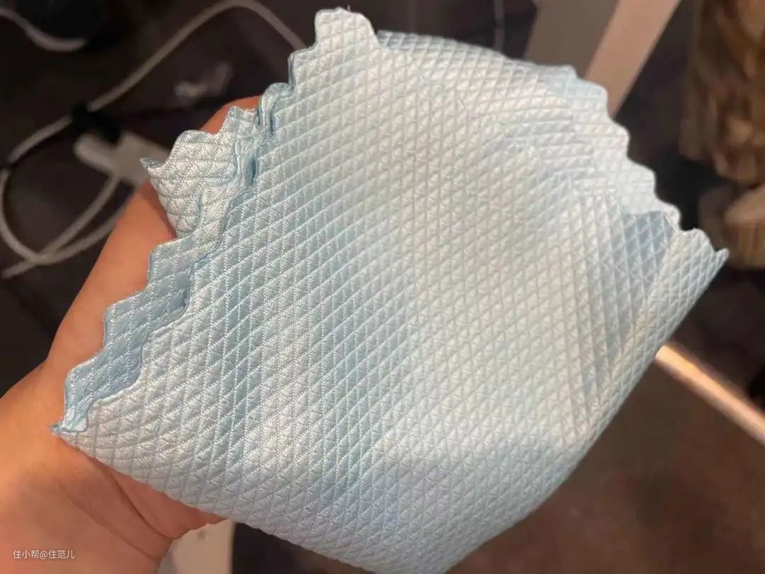 鱼鳞布强度高韧性强的超细纤维,不管怎么擦都不容易留下水渍和毛絮,吸水力也很强。