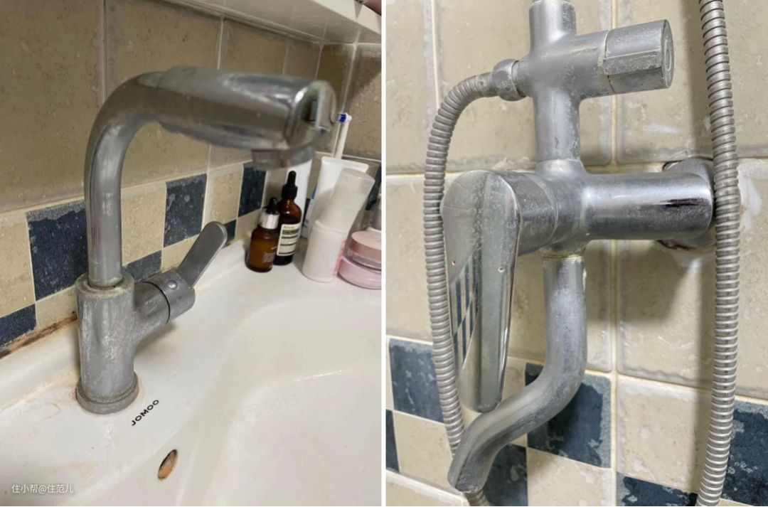 下水的五金上,水垢会稍微重一点,也比较顽固。