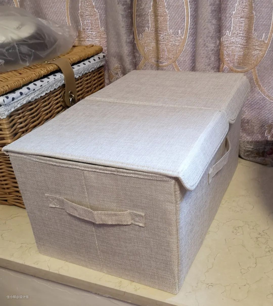 装收纳抽屉的话,后期想要去掉就比较麻烦,如果装修的时候没装抽屉,也可以后期购买一些简易的收纳篮放在飘窗上,这样把物品放进收纳篮再放到飘窗上,也能实现美观实用的效果。