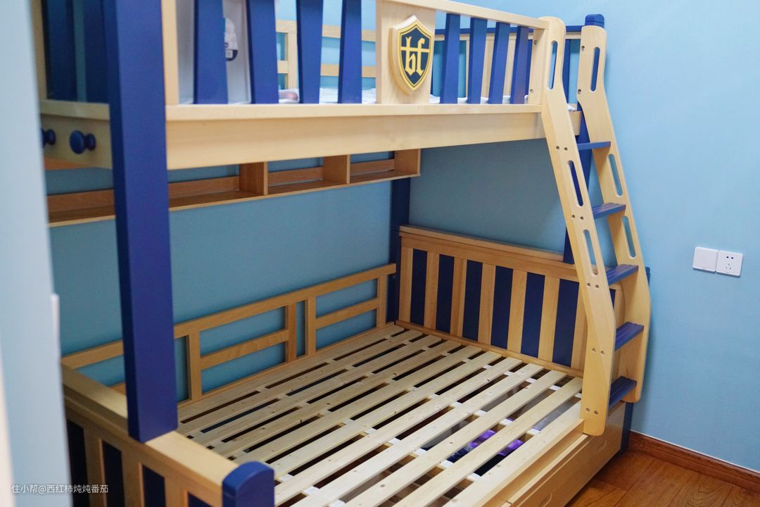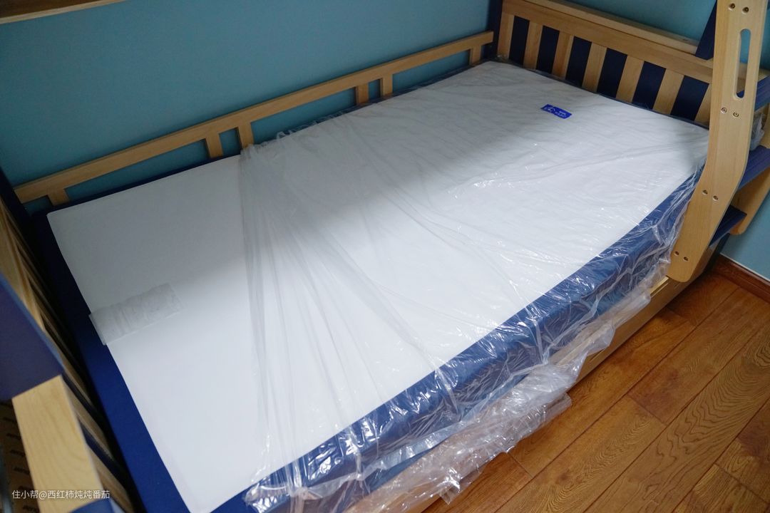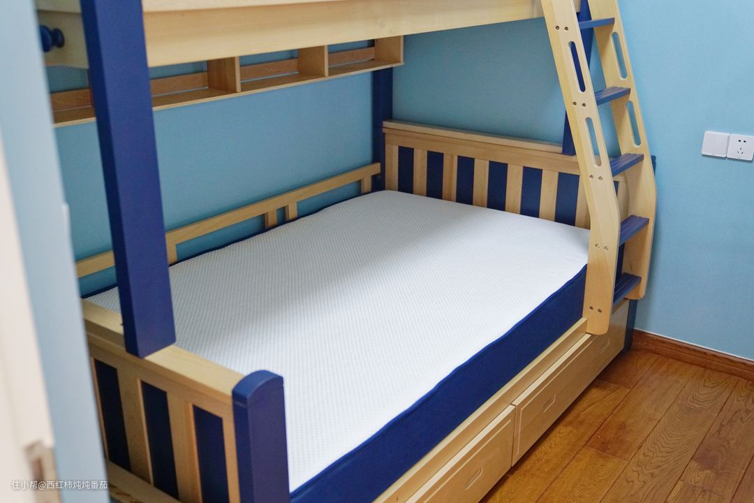 选购的时候楼主倒是没有留意床垫侧面的蓝色跟楼主家里的高低床蓝色基本完全一致,放上去以后相当自然,就跟原装配套似的 ▲
