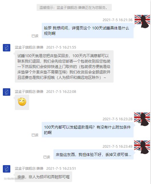 此次入手的蓝盒子床垫,楼主此前对这个品牌其实没什么了解。之所以决定“试试”,完全是因为品牌所谓的“100天免费试睡”的承诺与楼主的床垫选购理念不谋而合——试试呗,反正大不了退货~