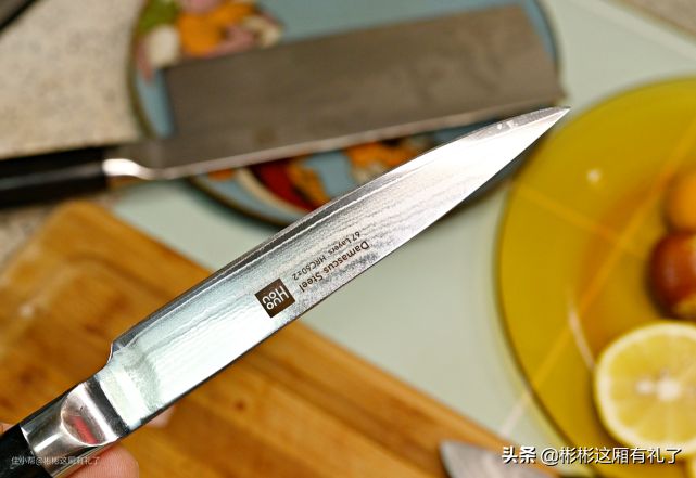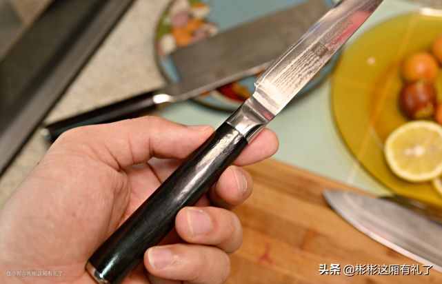 ▲至于切水果、切柠檬这种小事儿,实在是牛刀小用。只是刀刃真的过于锋利,对于本不会削水果的我而言,用刀时真是如履薄冰,生怕被削的不是水果而是手指。不过我也想不到有啥方法可以测试这把大马士革钢小刀了,可别告诉我去削石头,我可舍不得啊。话说,30°不到的刀锋倒是实用,剔小东西是真实用。