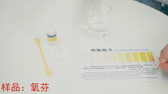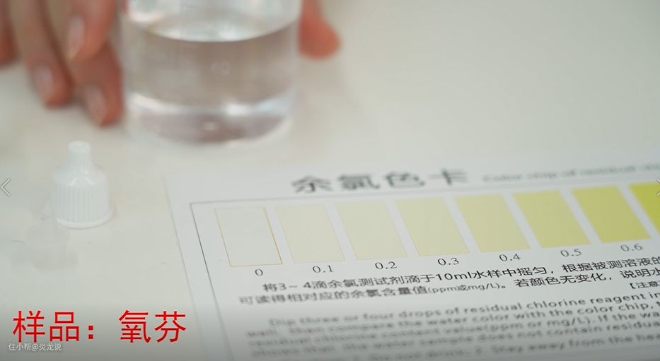 对比色卡发现,数值达到0.8ppm,余氯浓度过高的话,刺激性很强,对呼吸系统也会有伤害。