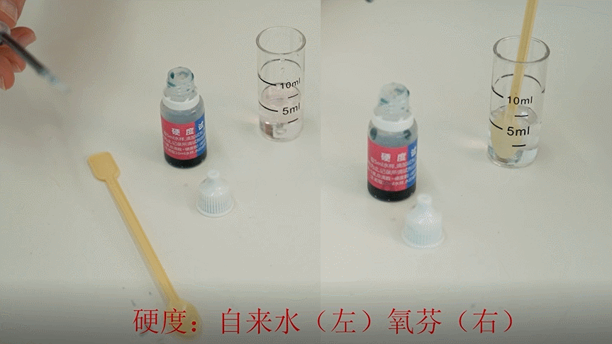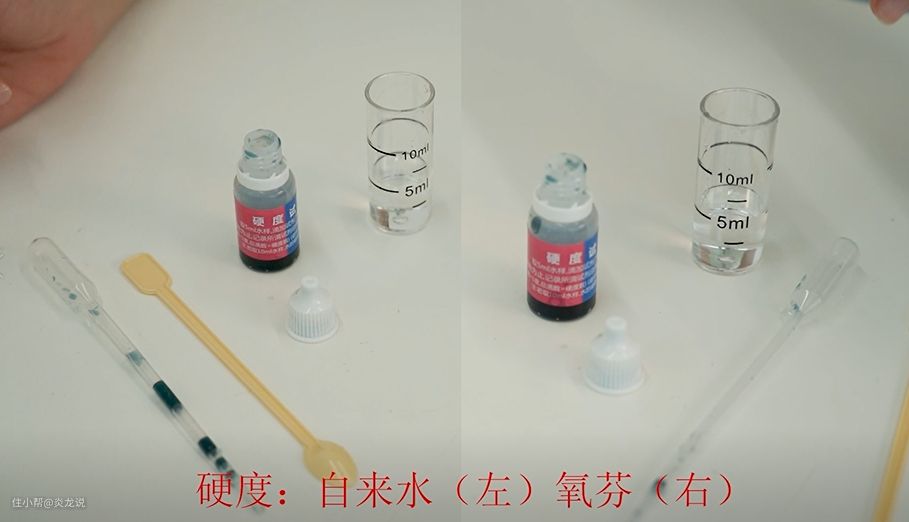 起泡效果是比较直观的一种方式,但我也想知道除氯、除铁锈杂质、软化水质这几方面,氧芬磁解水龙头净水器是不是真的有效净化,这就要借助一些试剂了。