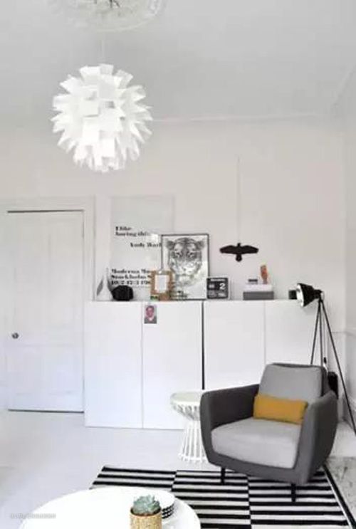 进门处见厅的房型中,鞋架如何放置早已拥有确立的回答。有时,换一种设计方案和摆放的构思,房型遗憾也可以变为优点!沒有玄关的设计还可以很漂亮!